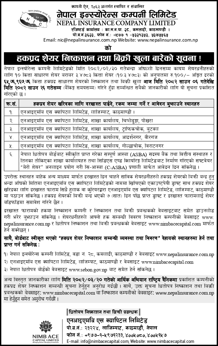 NICL Right Share-1st Follow-Up Notice.