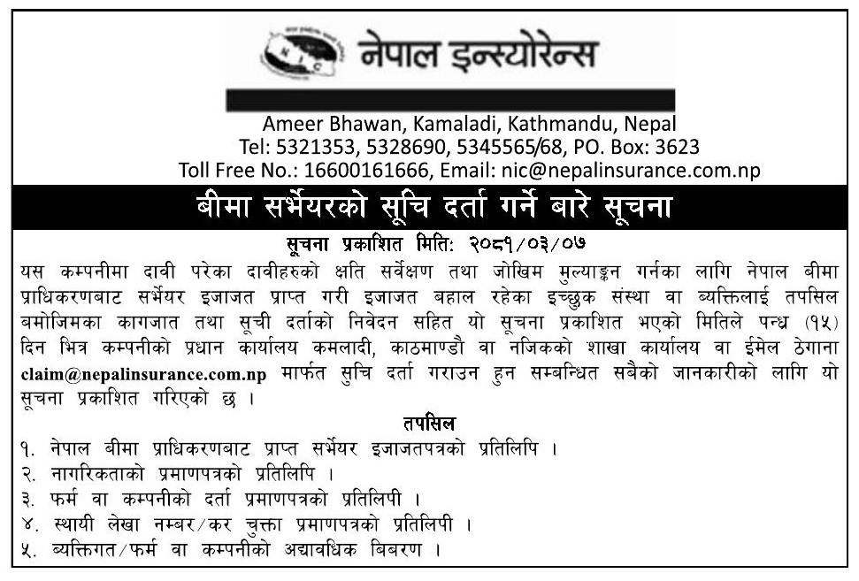 You can download the claim Intimation, fill it up and mail to claim@nepalinsurance.com.np,